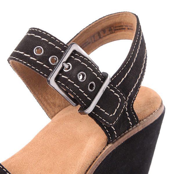 코르크 웨지형태의 아웃솔에 쿠션좋은 스웨이드 가죽 인솔 사용으로 쿠션감이 좋은 제품