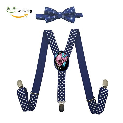 (Sans Bendy's Suspenders)/Accessories/Suspenders Cummerbunds/DIRECT FROM USA/Custom Skulls Butterfly Y-Back Clip Suspender with Bowtie Set Adjustable for Kids