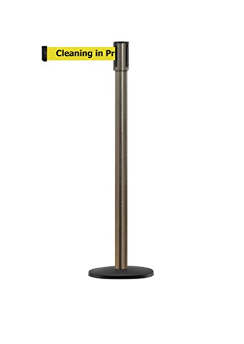Tensabarrier - 890B-33-3S-3S-MAX-NO-YCX-C - satin stainless post, 2" wide, 13' length yellow Cleaning in Progress belt