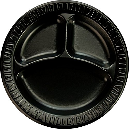 SOLO 9CPBQR Laminated Foam Plate, Compartmented, 9" Diameter, Black (Case of 500)