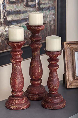 Deco 79 Wood Candle Holder, 15 by 14 by 12-Inch, Set of 3