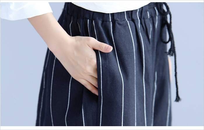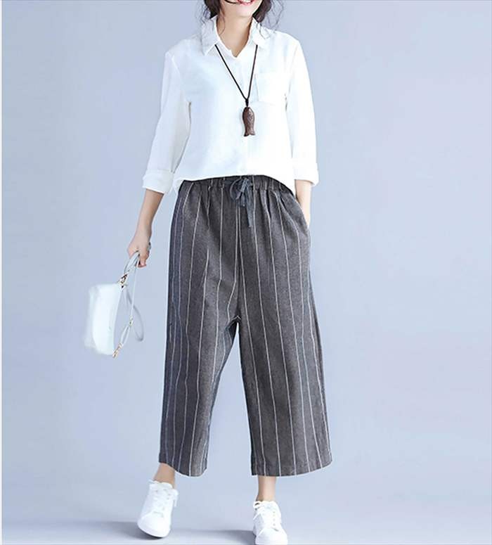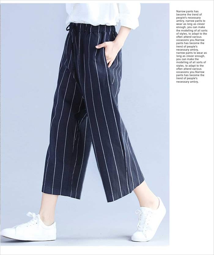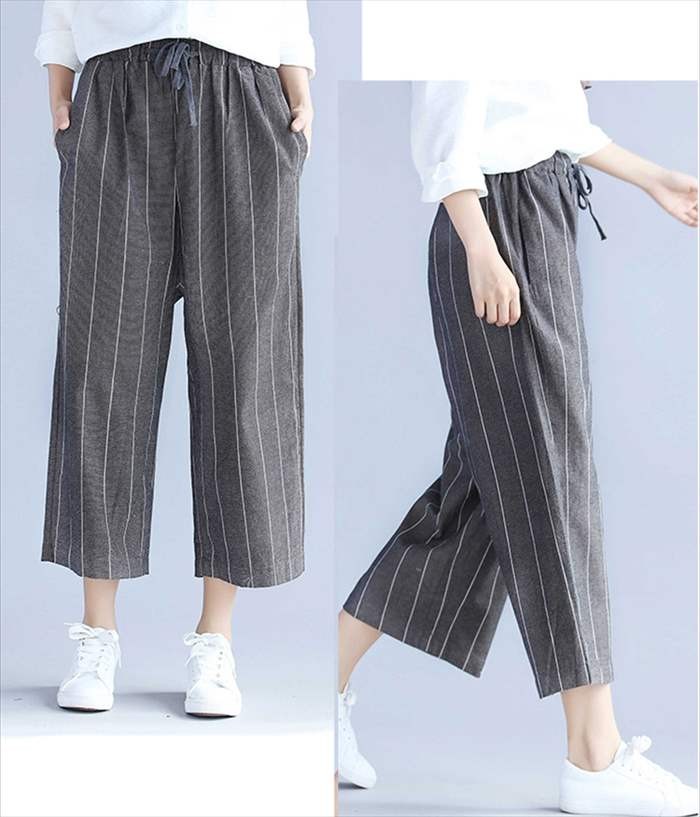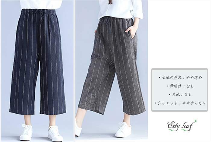 ・シンプルなストライプ柄のガウチョパンツ。・ウエストはゴムになっており、さらに紐を通して調整もできて履き心地はらくちん♪・比較的薄めのサラッとした麻混生地なので、これからの季節、お出かけにも部屋着としても大活躍です。・細いストライプラインは合わせる服によってカジュアルにも、きれいめにもお楽しみ頂けます。・大人気のガウチョパンツは、足首を見せる事でスッキリとこなれた印象に。・幅広いコーディネートに取り入れる事ができ、ヘビロテ間違いなしのオススメアイテムです。 ●サイズ展開 【Free】 着丈80cm ウエスト66~90cm 裾幅28cm※平均での採寸となりますので、多少の誤差が生じる場合がございます。ご了承くださいませ。●カラー展開 ブラック グレー●商品詳細 【素材】:コットン・リネン 【透け感】:なし 【厚み】:やや薄め【裏地】:なし 【シルエット】:ややゆったり 【伸縮性】:なし【付属品】:なし (コーディネート使用の衣類、アクセサリー等は付属しません)20代 30代 40代 50代 人気 レディースファッション 大きいサイズ