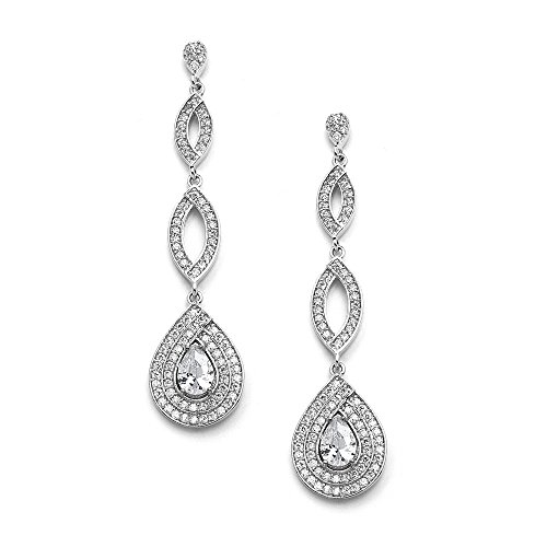 -. Title : Mariell Dramatic Micro-Pave CZ Dangle Bridal Wedding Earrings with Genuine Silver Platinum Plating