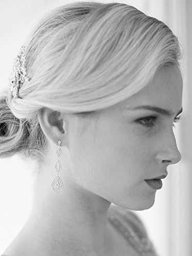 -. Feature : Breathtaking Wedding Earrings with 100's of Delicate Inlaid Micro Pave CZ Stones / Plated in Genuine Platinum-Based Rhodium; Slender Statement Earrings 2 3/8" h / Finest Top Quality AAAAA Grade Cubic Zirconia for endless diamond-like sparkle / Lifetime Guaranteed with enduring luster for years of beautiful sparkle; Risk-Free Money Back purchase if not delighted / Beautiful Free Gift Box Ideal for Bridal, Wedding, Holiday, Mother's Day, Birthday or Anniversary Gifts