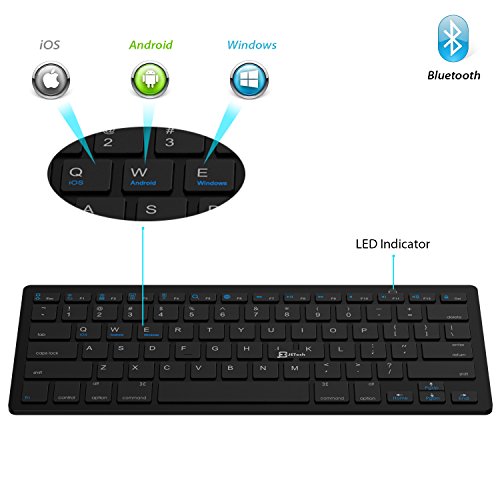 JETech® Bluetooth Wireless Keyboard for iPhone, iPad Pro, iPad Air, iPad Mini, iPad 2/3/4, Galaxy Tab, Mac, Windows, and any bluetooth enabled device (Black)