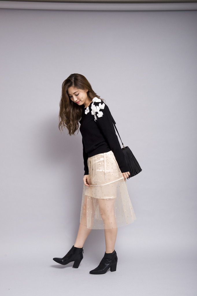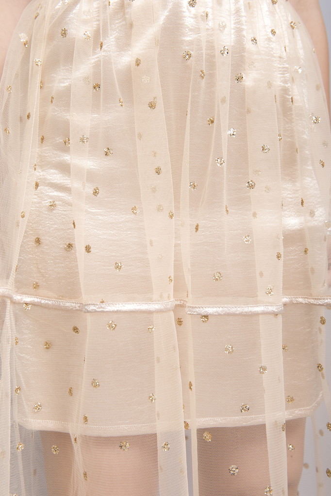 チュール素材にグリッターでドットをプリントした繊細なスカートです。