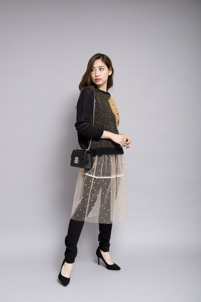 インナースカートを合わせてニットとコーディネートしてもかわいいですがインナーなしでパンツに合わせてもコーディネートしても今年らしいですね☆