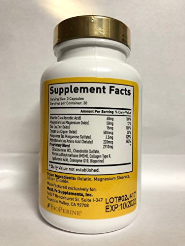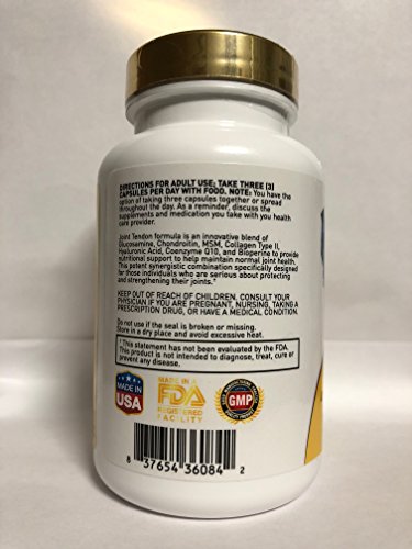 Joint Tendon formula is an innovative blend of Glucosamine, Chondroitin, MSM, Collagen Type II, Hyaluronic Acid, Coenzyme Q-10, and Bioperine to provide nutritional support to help maintain normal joint health. This potent synergistic combination specifically designed for those individuals who are serious about protecting and strengthening their joints.