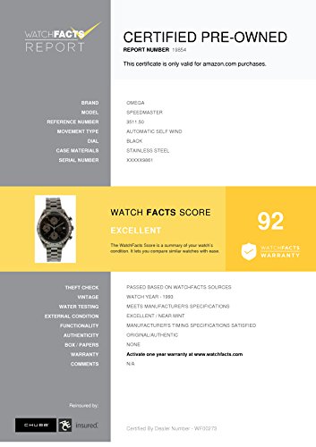 -. Feature : Omega Speedmaster 3511.50 with 7 inches band, stainless-steel bezel and black dial / Authenticated by WatchFacts. Grade Rating: 92 / Condition: Excellent / No papers offered with this watch / Automatic-self-wind movement / Watch year: 1993
