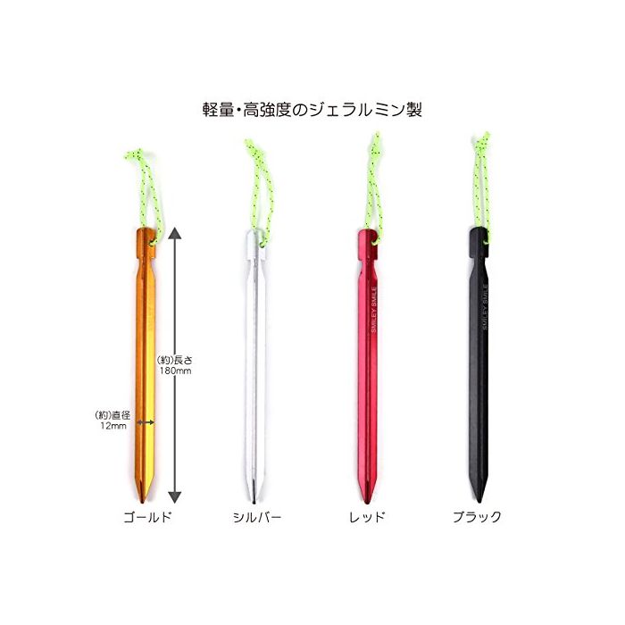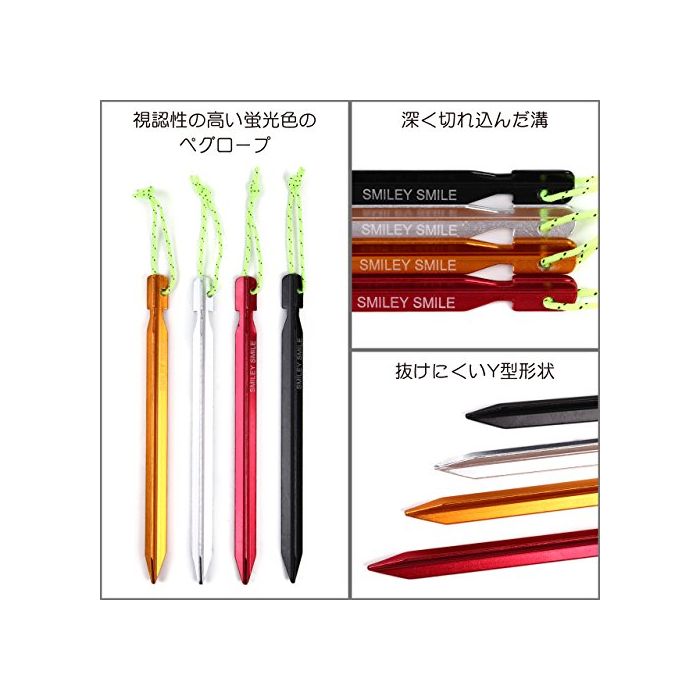 원본상품명: Smiley Smile(スマイリ?スマイル) テント ペグ 18cm Y型 ジェラルミンペグ4色20本セット