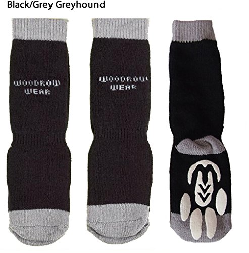 -. Feature : These socks are a sensible, sock based traction solution for dogs. They are made of cotton and elastic for comfort, fit and adaptability. / Help older dogs with mobility issues, arthritis or hip dysplasia. Help younger dogs with traction on slippery surfaces. / Reinforced toes are very beneficial to dogs who have long nails, or neurological issues that may cause them to drag a foot. Protect both paws and hardwood floors / Protect paws from heat, allergens or irritants. May be sprayed with Scotchgard or other waterproofing spray to protect paws from snow / Help keep paw wounds clean while providing air flow for healing.