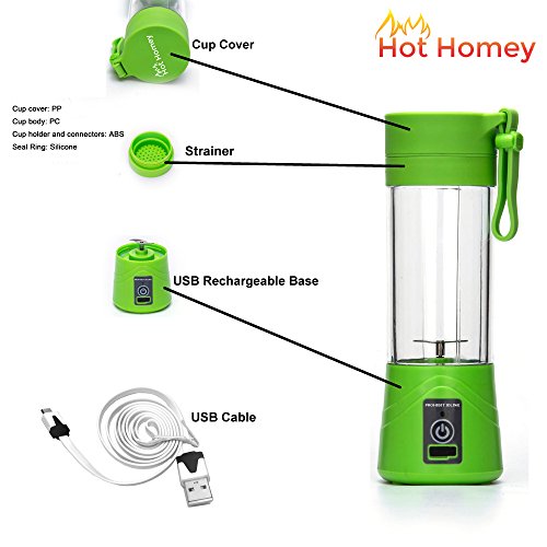 ? HotHomey Cup??is your unmarched quality personal usb juicer. Because we care for the environment, we worked hard with our suppliers to select the best material for this product. Hot Homey made with BPA free, eco-friendly and food grade material and takes as little as 60 seconds to mix a one serve protein shake or fruit blend.? Our blender comes with in-built safety feature to prevent unintended start which could result to injury. The Cup must be properly screwed to the base before your are able to start the unit. The blender also shuts down when over loaded to protect it from damage. If blender shuts down while in operation, reduce the load and start it again.? Our blender workes best for fruits chopped in cubes. While blending, shake blander for a much better experience. ? What is included: 1 Hot Homey USB Blender 1 Micro USB cable 1 English Instruction Manual ? Spacifications: Material ?Cup Cover - PP ?Cup Body - PC ?Cup Holder - ABS ?Seal Ring - Silicone Voltage: 3.6V; Battery Charge Time: 3 hours; Charge Source: USB (Cable included) Current: 10 - 12A No Load Speed: 22000rpm Full Load Speed: 15000rpm Cup Capacity: 380 ml We are always very proud of our product quality and that is why we offer you worry free purchase with our?100% Satisfaction Guarantee.?Yes! Our quality personal USB blender is backed by our manufacturer?30 days money back guarantee with 1 year free parts replacement. 0 |