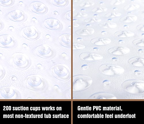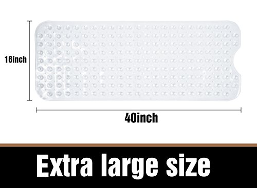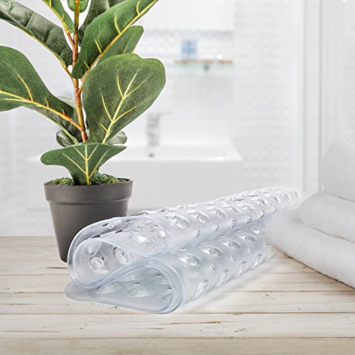 THETIS Homes Rectangle Bath tub and Shower Mats, Machine Washable, Anti-Bacterial Non-Slip wih Suction Cups, 40-Inch-by-16 Inch, Clear