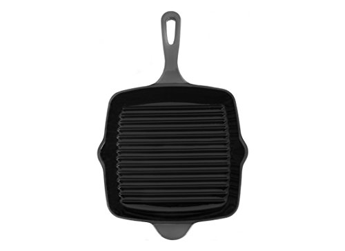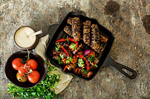 The cast iron grill pan is suitable for use on most stove and oven types. It can be also used outdoors over a campfire. It is recommended for the cooking and grilling of meat, chicken and vegetables. It can also be used to serve hot dishes.