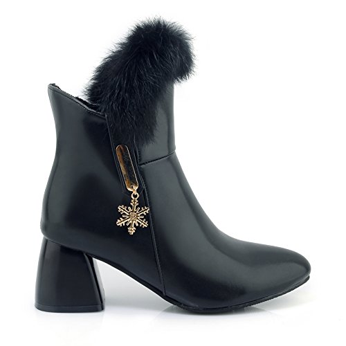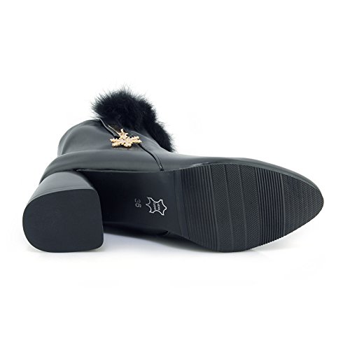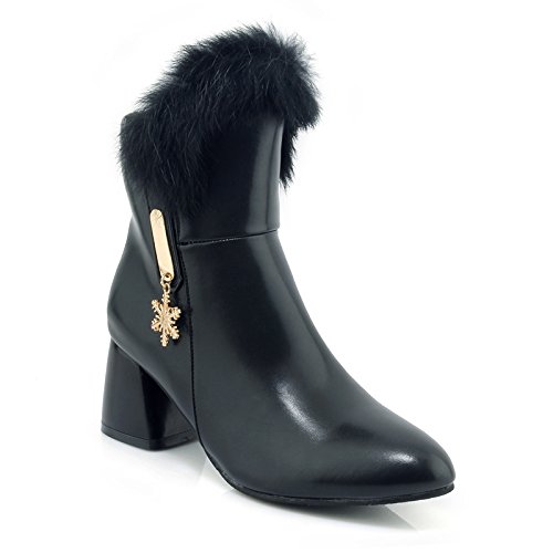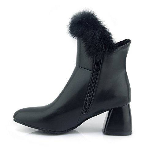 (BalaMasa)/Women's/Boots/DIRECT FROM USA/BalaMasa Womens Mid-Heel Zipper Fringe Round-Toe Solid Urethane Boots ABL09666