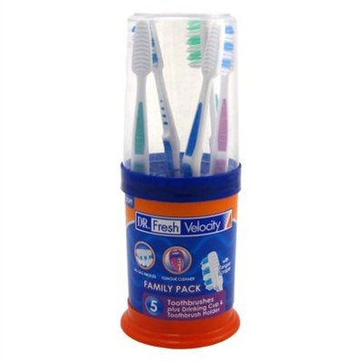 Dr. Fresh Toothbrush Family Pack 5'S Plus Cup & Holder (2 Pack)