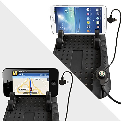 FH Group Universal Car Phone Mount Phone Dashboard Mount FH3012BLACK Car Silicone Charger Stand (with 2 in 1 Charging Cable) for iPhone 6 6s 7 7s and Samsung Galaxy and Tablet