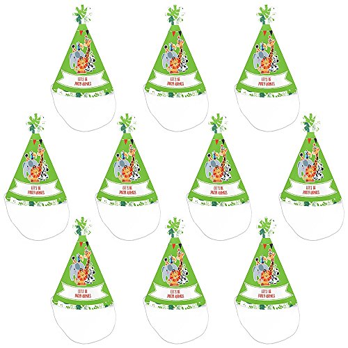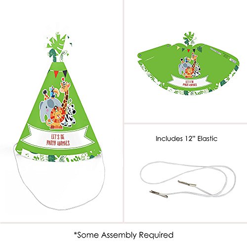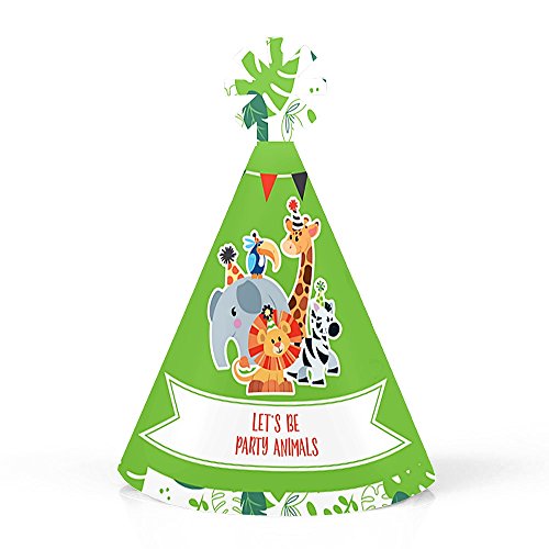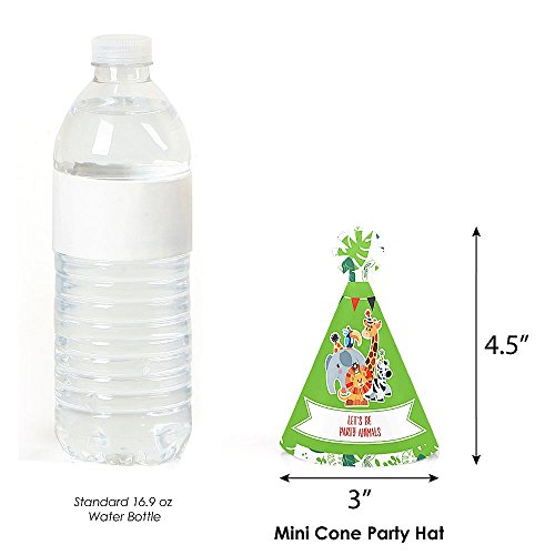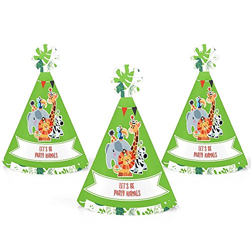 -. Feature : Jungle Party Animals Mini Party Hats INCLUDES 10 zoo animal hats with elastic chin straps. Mini baby shower or birthday party hats will fit both children and adults. / 10 Jungle Party Animals hats SIZE 4.5 inches tall and 3 inches in diameter at the base. The included elastic chin straps measure 12 inches long. These cute safari party accessories feature a unique star cut-out decoration at the top and the P.R.Inted saying "Let's Be Party Animals". / FUN JUNGLE PARTY ACCESSORIES: Jungle Party Animals mini party hats are perfect for your zoo animal party. This set of cute tiny party hats will help you take adorable baby shower or birthday photos. Best of all, mini party hats are perfectly sized for adults, kids, and even pets, so everyone can get in on the photo fun. Little party hats are sure to be enjoyed by all your friends and family! / PREMIUM MINI PARTY HATS: Set of 10 Jungle Party Animals mini party hats are professionally P.R.Inted on heavy-duty card stock paper with a photo-like shine. They are individually inspected, then carefully packaged. Jungle Party Animals cone baby shower or birthday party hats will arrive flat, with the chin straps attached. Easy assembly is required. Simply roll the party hat into a cone shape and slide the tab into the slot to secure. / MADE IN THE USA: Jungle Party Animals - Safari Zoo Animal - Mini Cone Birthday Party or Baby Shower Hats are designed and manufactured at our Wisconsin facility using materials that are Made in the USA.