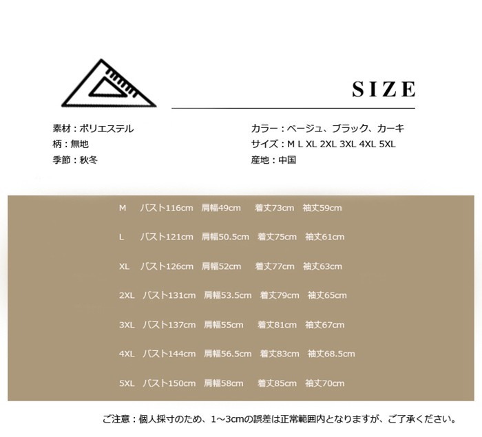 マウンテンパーカー メンズ ジャケット メンズ ショート丈 無地 大きいサイズ ゆったり 春コート トップス 撥水 アウトドア 2018新作登場 マウンテンパーカー メンズ 大きいサイズ 春コート トップス商品詳細素材:ポリエステル柄:無地季節:秋冬カラー:ベージュ、ブラック、カーキサイズ:M L XL 2XL 3XL 4XL 5XL 産地:中国サイズ参照表M バスト116cm 肩幅49cm 着丈73cm 袖丈59cmL バスト121cm 肩幅50.5cm 着丈75cm 袖丈61cmXL バスト126cm 肩幅52cm 着丈77cm 袖丈63cm 2XL バスト131cm 肩幅53.5cm 着丈79cm 袖丈65cm3XL バスト137cm 肩幅55cm 着丈81cm 袖丈67cm4XL バスト144cm 肩幅56.5cm 着丈83cm 袖丈68.5cm5XL バスト150cm 肩幅58cm 着丈85cm 袖丈70cmご注意:個人採寸のため、1~3cmの誤差は正常範囲内となりますが、ご了承ください。マウンテンパーカー メンズ ジャケット メンズ ショート丈 無地 大きいサイズ ゆったり 春コート トップス 撥水 アウトドア 2018新作登場 マウンテンパーカー メンズ 大きいサイズ 春コート トップス