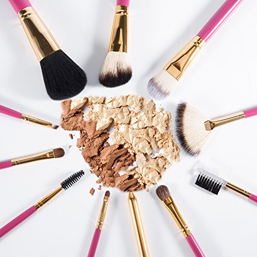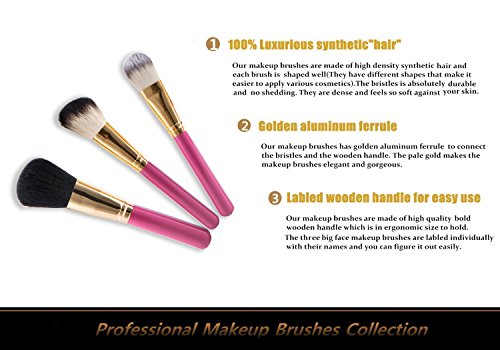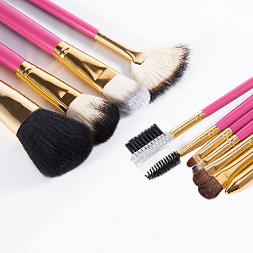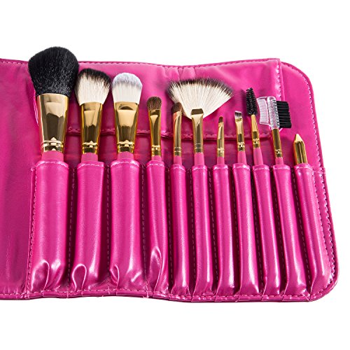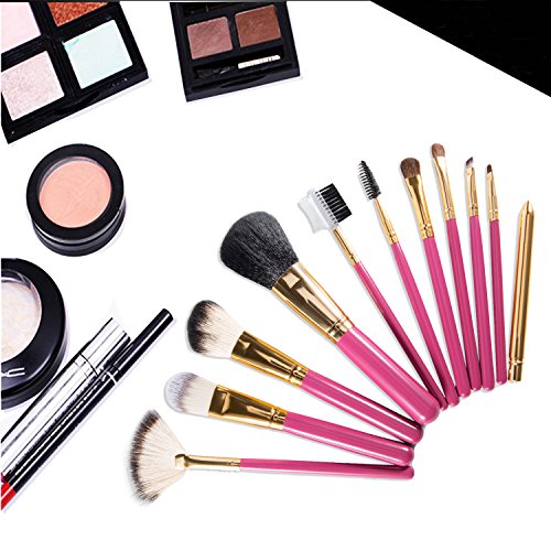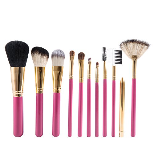 -. Title : OXKING 11 PCS Wool Makeup Brush Kits,A Rose red Cosmetic Brush Sets with Pink Leather Pouch for Blush Foundation Lip Eye and Eyebrow Makeup.