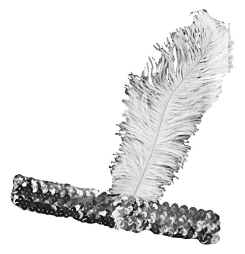 Binding : Misc. Product Description Ladies Ostrich Feather headband Stunning hair accessory for flapper fancy dress costumes Material: Ostrich Feather, Sequins Elastic headband Perimeter: Approx.34-44cm Package Includes: 1 x Ostrich Feather Headband 0