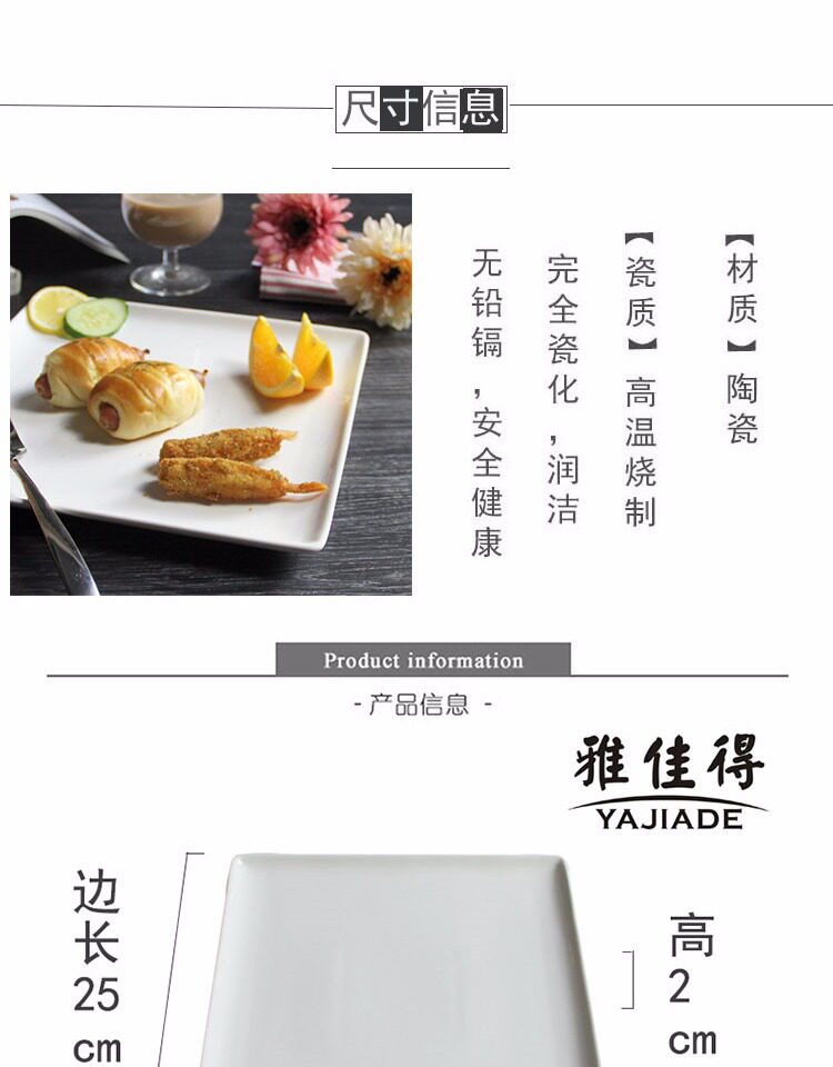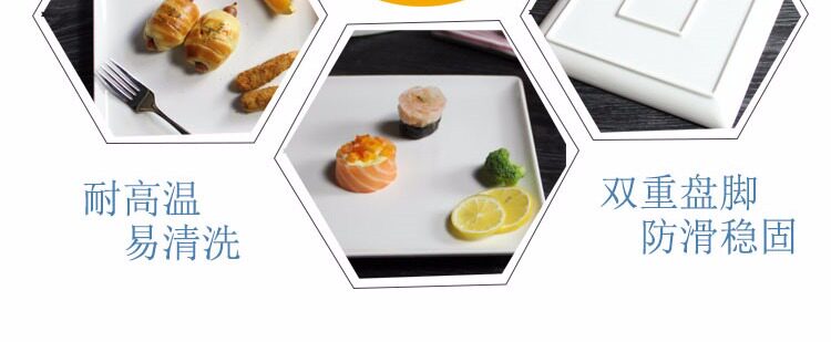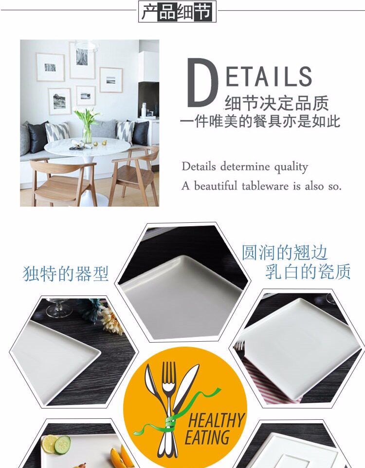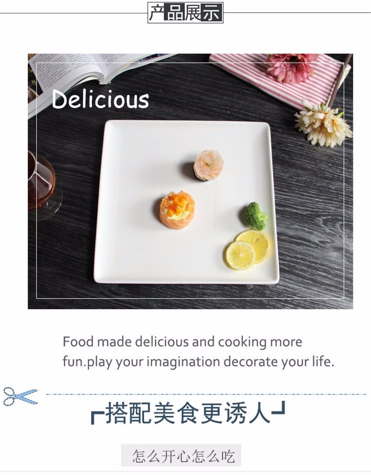 方盘牛排盘子 西餐盘子陶瓷 创意平盘浅盘 家用西餐餐具白色盘子