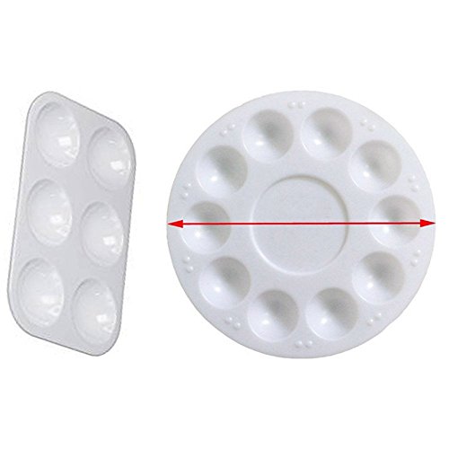 - Paint pallets 12 pieces: 6pack round art palettes 7inch/17cm, and 6pack rectangle paint plastic palettes 3 1/2" by 5"
