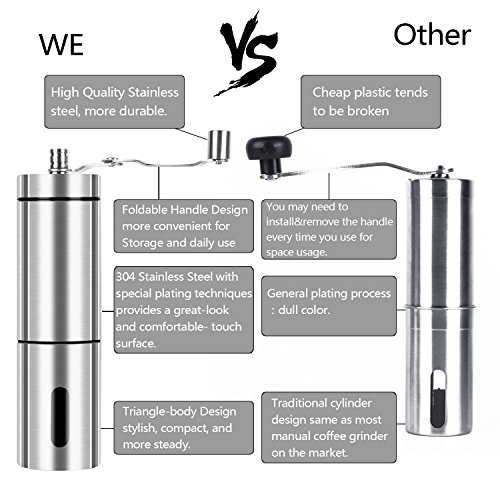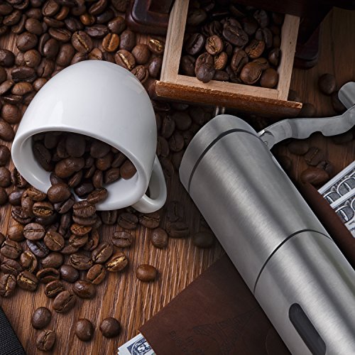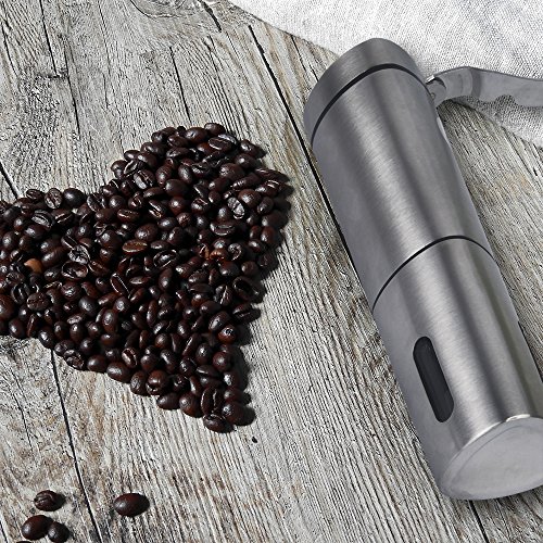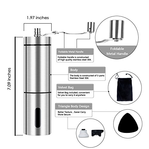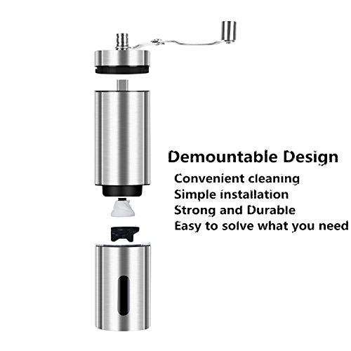 Portable&Easy Operation: Demountable and compact design, perfect for travel, camping, hiking with your freshly roasted ground coffee beans. And It is completely silent compared to the electric grinders and no batteries or power needed.