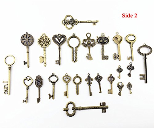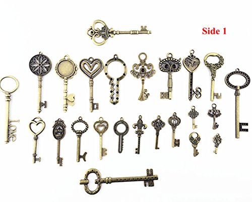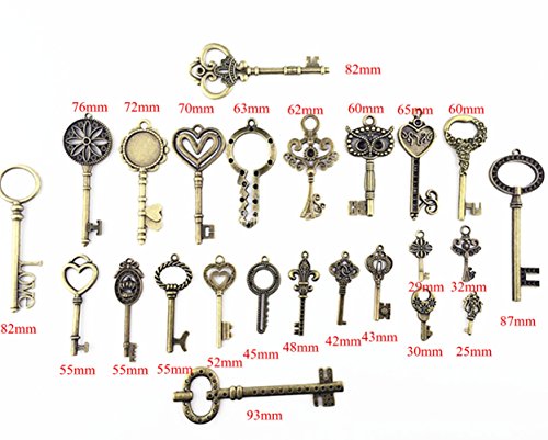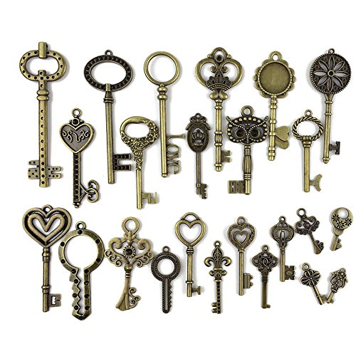 Makhry 24pcs Jewelry Making Charms Craft keys Decorative Key Skeleton Bronze Key in Antique Bronze Style for Wedding Graduation Christmas New Born Birthday (Mix 24pcs Bronze Keys No Repeat)