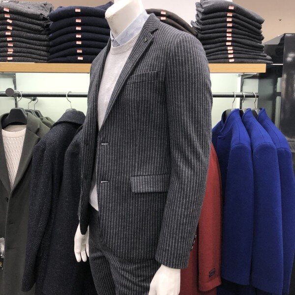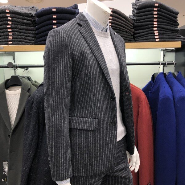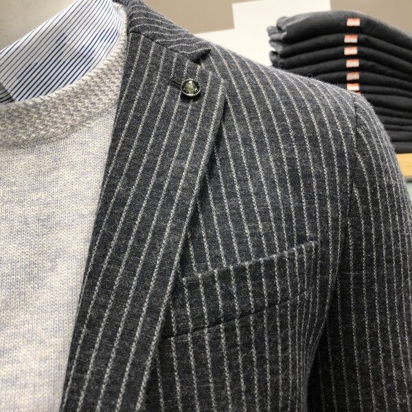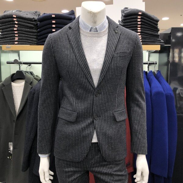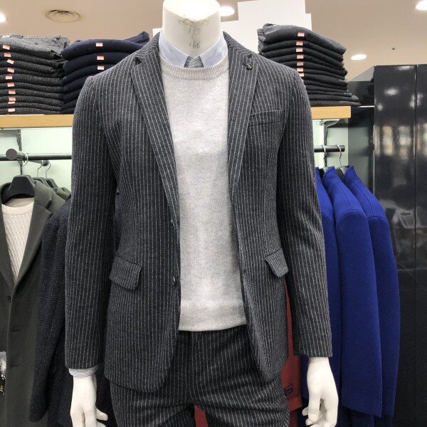 울져지 소재의 F/W 시즌용 캐쥬얼 자켓 입니다 블랙 칼라의 깔끔한 스트라이프로 세련되면서도 니트나 맨투맨티셔츠 레이어드로 데님팬츠랑 캐쥬얼 착장이 가능한 스타일입니다 슬림핏으로 착장시 보여지는 실루엣이 매우 이쁘며 사방 스트레치로 활동성이 매우편한 자켓 입니다
