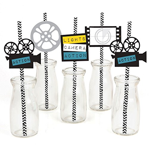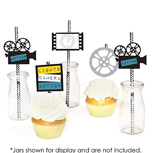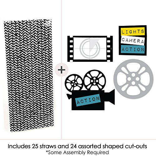 -. Feature : Movie Straw Decor INCLUDES 24 Hollywood paper cut outs, 25 coordinating paper straws & 40 clear stickers for easy assembly. Yes, you'll receive one extra straw. Film DIY party supplies are perfect for a graduation party. / Movie Straw Decor party kit SIZE 6 movie screens 2.75" wide x 1.6" tall; 6 squares 1.75" wide x 2" tall; 6 film recorders 3" wide x 2.5" tall; 6 circles 2.5" wide x 2.5" tall; and 25 chevron striped paper straws 7.75" tall. / EASY PARTY DECORATIONS: Movie straw décor will add a touch of style to your graduation party tables. Hollywood straw décor will also look great at your beverage bar. Use these adorable Filmstrip party accessories as straws or swizzle sticks. The paper straws can also be cut in half and used as cupcake picks once the shaped cut out is attached. / PREMIUM PARTY SUPPLIES: Movie paper cut out straw decorations are professionally P.R.Inted on heavy-duty cardstock paper with a photo-like shine. They are individually inspected and carefully packaged by hand, along with coordinating paper straws. Movie Straw Decor will require some easy assembly. Simply adhere the shaped cut outs to the straws using the included clear stickers. Get creative with your DIY graduation party decoration ideas! / Please Note: Mason Jars shown for display purposes and are not included.