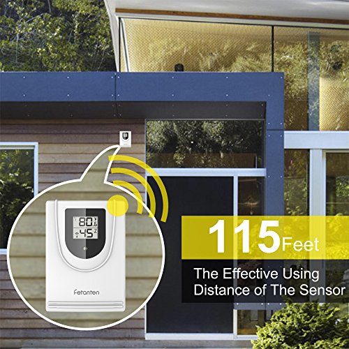 Remote sensor Please note that The maximum transmission range of the remote sensor is up to 115 feet without obstruction.If within this range ,there is no outdoor reception , please do as follows: