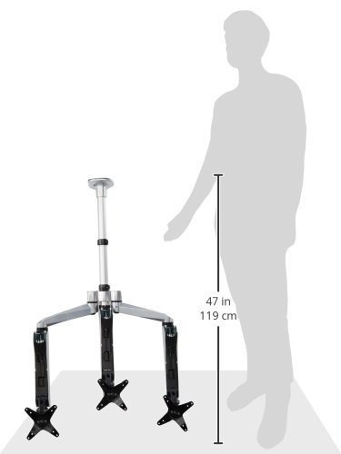 - Fits up to three 19-Inch monitors straight in a row or three 28-Inch monitors if one positioned on top of two; Weight Capacity: Supports 19.8lbs (9kgs) for each monitor; Solid Aluminum die-cast construction
