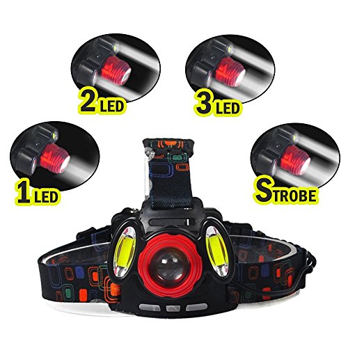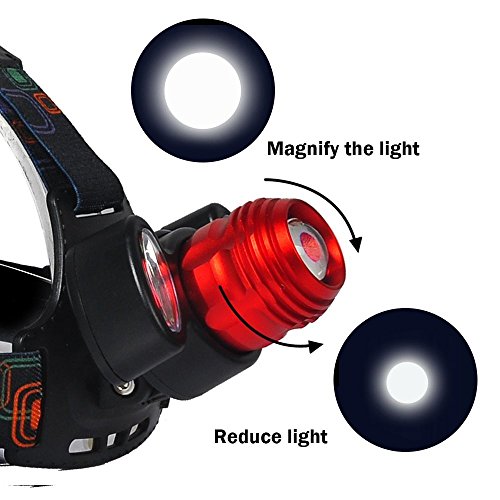 Waterproof Headlamp Headlight Flashlight - Zoomable Super Bright , 4 Modes CREE T6 LED, Rechargeable Batteries, Adjustable - Outdoor Hiking Camping Riding Fishing Hunting One button switch supports 4 WORKING MODES: 1LED/ 2LED/3LED/ flashing.