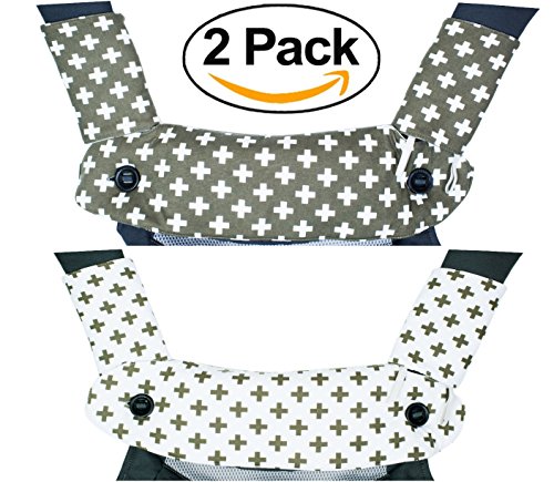 Premium 2 Packs Drool and Teething Reversible Cotton Pad | Fits Ergobaby Four Position 360 and Most Baby Carrier | White Cross Gray Design | Hypoallergenic | Great Baby Shower Gift by Mila Millie