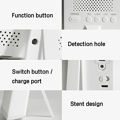 Parameters of Indoor Alarm Clock Temperature Detection Range: 0°C to 50°C (32°F - 122°F) Humidity Detection Range: 20% -95% Detection Period: 30 seconds Time Standard: 12 hours or 24 hours
