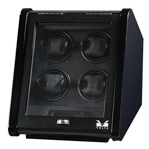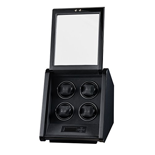-. Title : Men's Gloss Carbon Fiber Slanted Four Watch Winder w/ Black Leather Interior