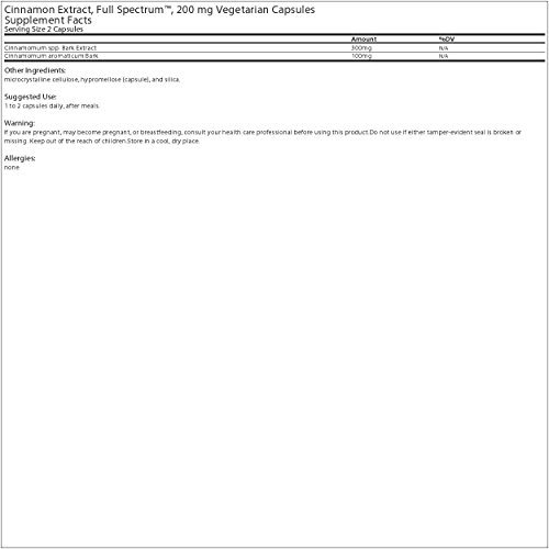 Studio : Planetary Herbals Publisher : Planetary Herbals Binding : Health and Beauty Product Description Cinnamon Extract, Full Spectrum Supports Healthy Blood Glucose Levels Traditionally used in Asian countries for improving and supporting digestion. A 40-day human study with 60 people found that cinnamon supported healthy blood sugar and cholesterol levels. Cinnamon contains flavonoids, which are potent antioxidants and may be synergistic with vitamins and trace elements.