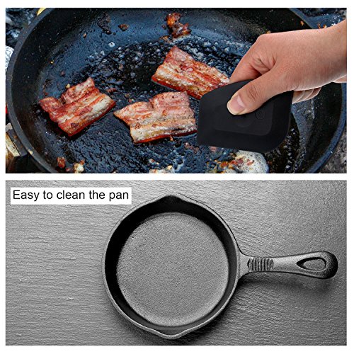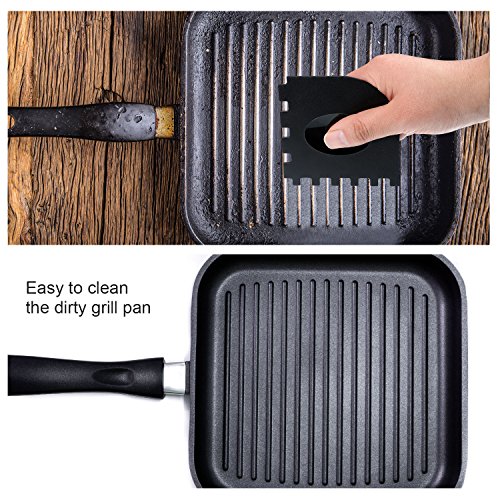 - Pan cleaner: made of plastic, the grill pan scraper is equipped with solid teeth, suitable for any modern pan, while the flat scrapers with 4 different shapes of corners for cleaning various shaped bowl