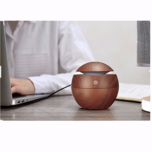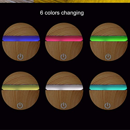 MOHOO 130ml Mini Aroma Essential Oil Diffuser, Wood Grain Cool Mist Humidifier Portable Ultrasonic Humidifier With 6 Color Changing LED Lights, Waterless Auto Shut-off