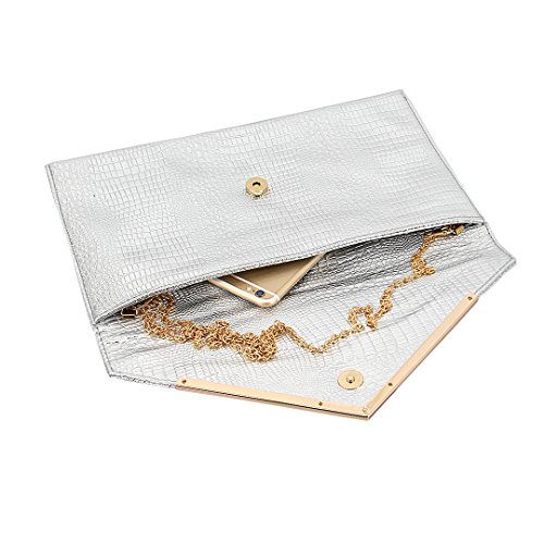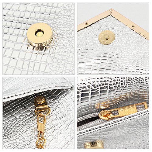 - FUCTIONALITY - Comes with a long detachable golden-tone chain which offers versatile carrying options as clutch, handbag, shoulder bag or crossbody bag. So roomy a bag that it is large enough to hold essentials like mobile phone, cards, cash, car keys, small wallet, mirror, lipstick and some makeups.