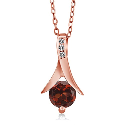 -. Title : 3.05 Ct Red Garnet White Diamond 18K Rose Gold Plated Silver Pendant Earring Set