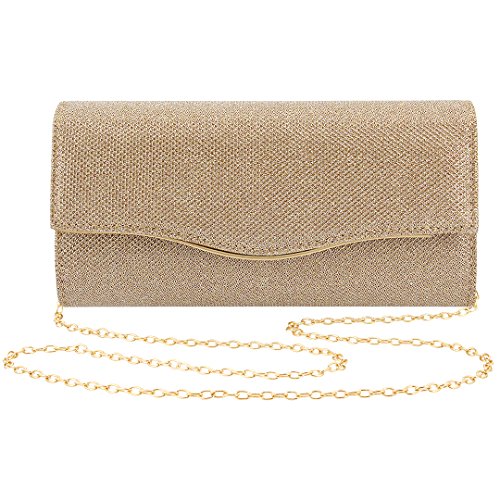 Gabrine Womens Evening Envelop Shoulder Bag Handbag Clutch Mesh Shiny Fabric Material for Wedding Party Prom