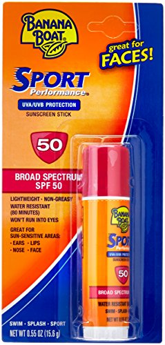 Product Description Banana Boat Sport Performance Sunscreen SPF 50 Stick is always handy. Rub on your ears, nose, lips or face for quick application, then move along. There's sun to enjoy! 0
