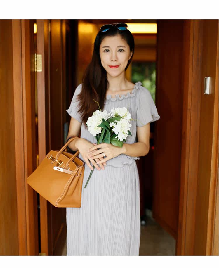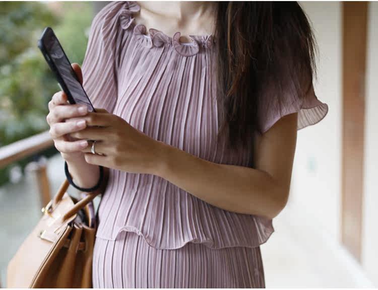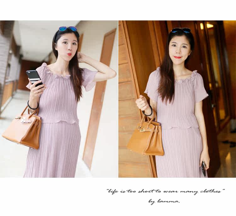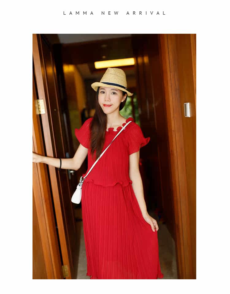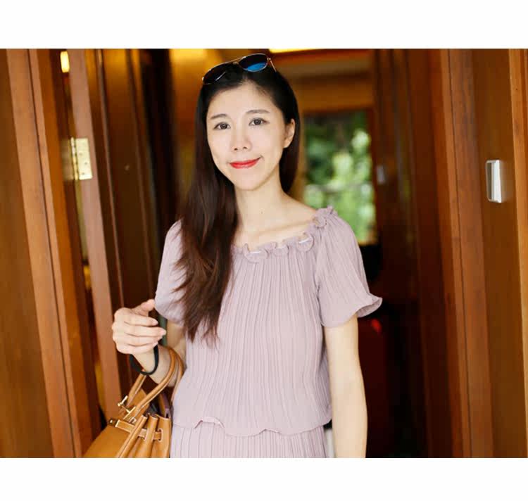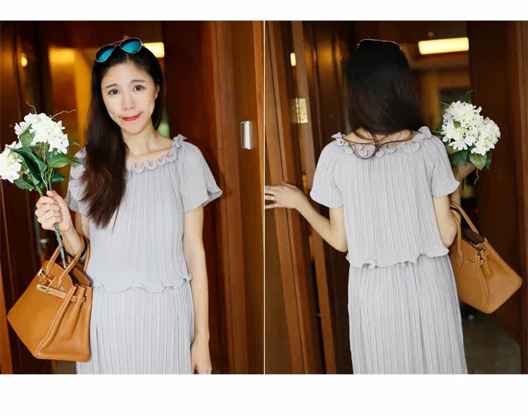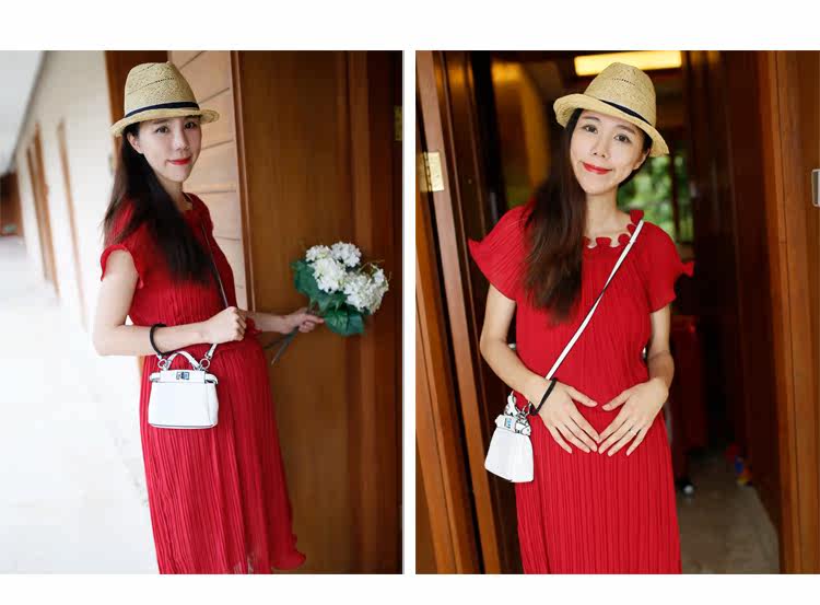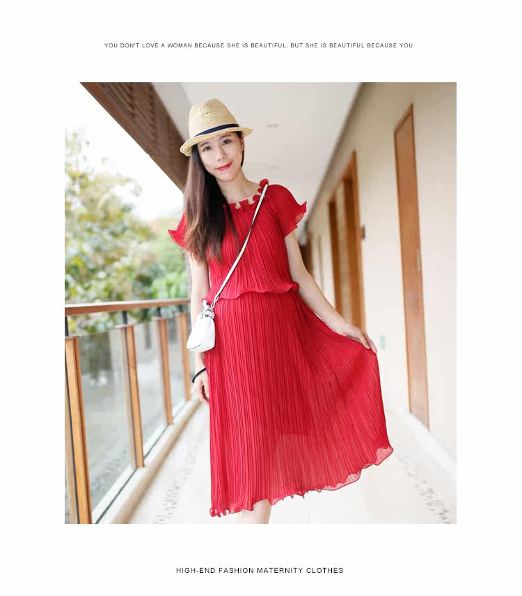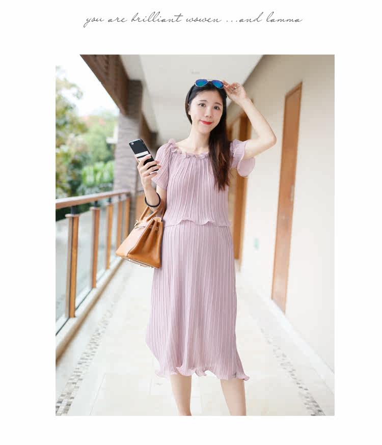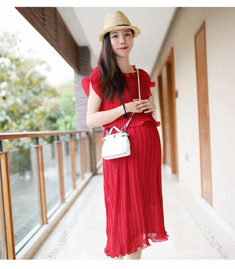 新款孕妇装两件套裙夏季短袖圆领孕妇装长裙子雪纺裙中长款