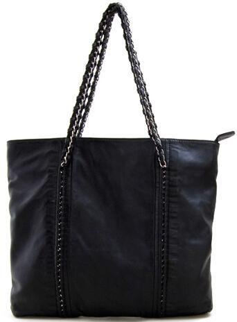 Lush Leather Chain Strap Black Tote