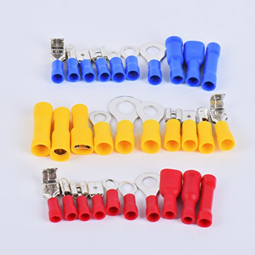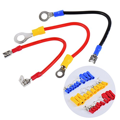 MULTIPLE SIZES: With three different colors (red, blue, yellow) as well as a detailed chart for easy identification or for different purposes of use, ring terminals for automotive battery wiring, and other for home use.