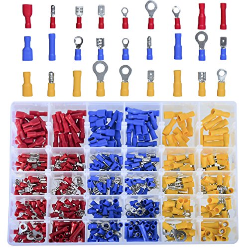 KIT INCLUDE: ring terminals wire connectors 150pcs, bullet terminal connectors 100pcs (male and female), spade connector terminals 150pcs (insulated or sami-insulated), butt splice connector 50pcs, piggy back terminals 30pcs. You will always find your desired wire terminals.