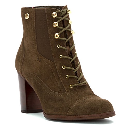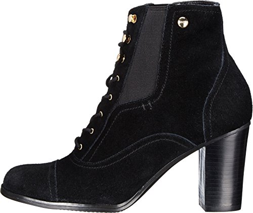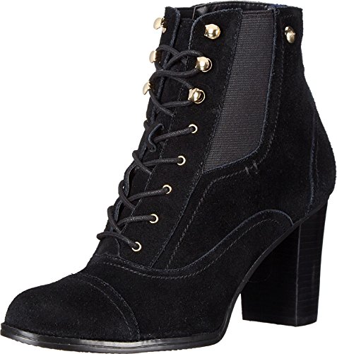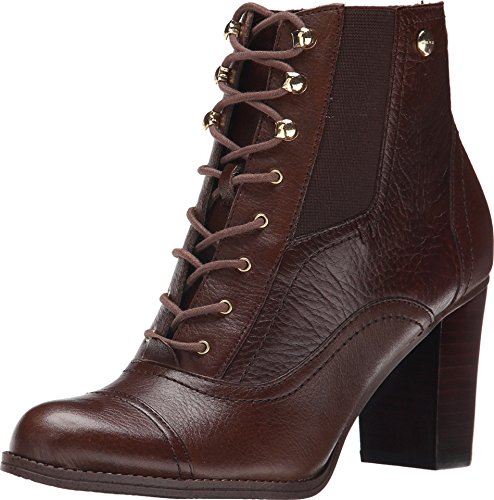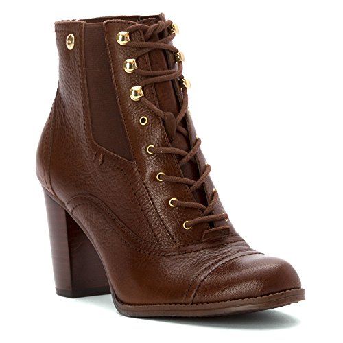 Lace-up construction. Dual gore panels. Round toe. Signature hardware detailing. Man-made lining and footbed. Stacked heel. Man-made sole. Imported.