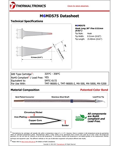 Thermaltronics M6MD575 Hook Long 30deg Fine 0.51mm (0.02") interchangeable for Metcal SMTC-0172